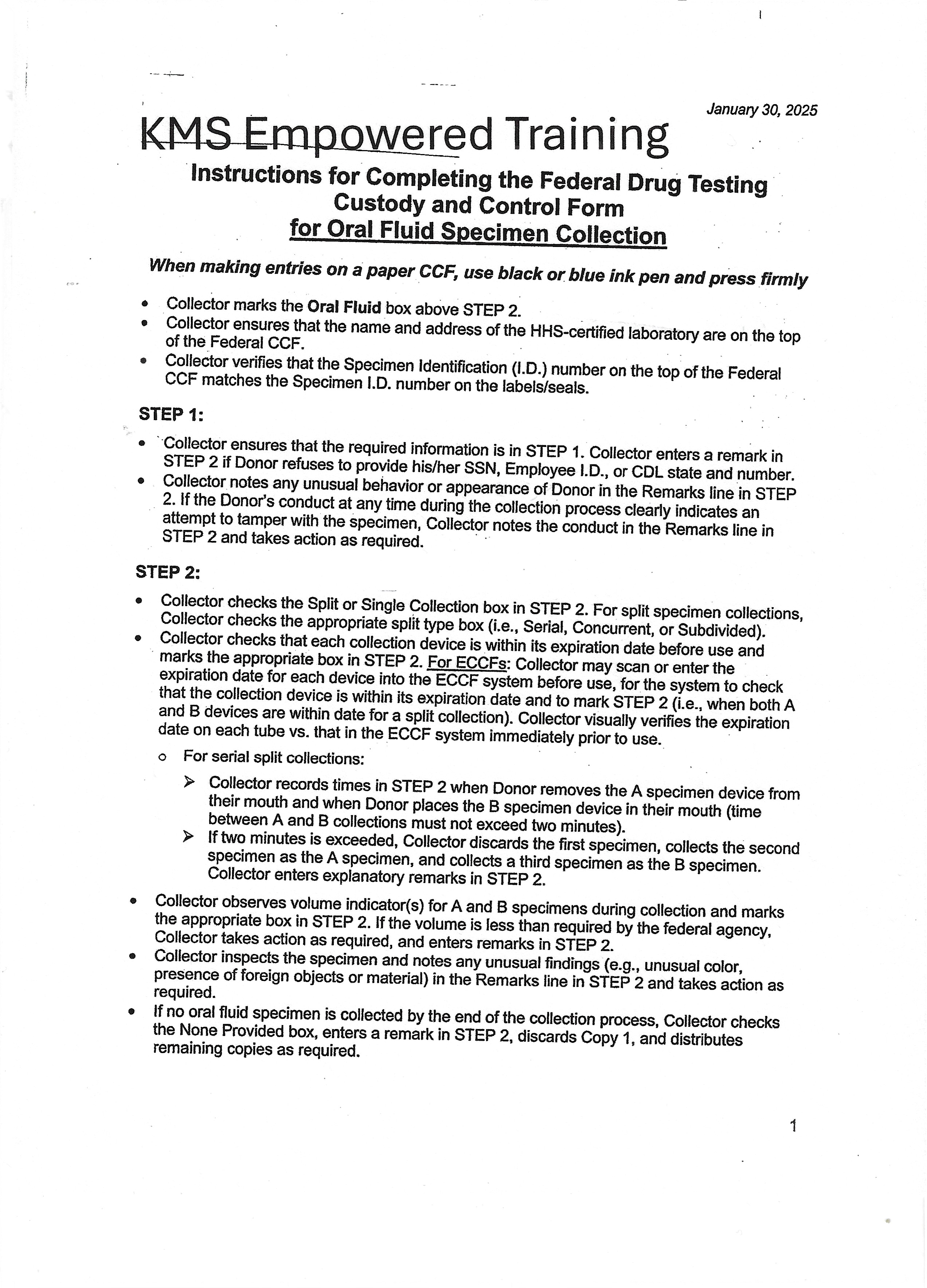 Procedure for DOT Oral Fluid Collections
